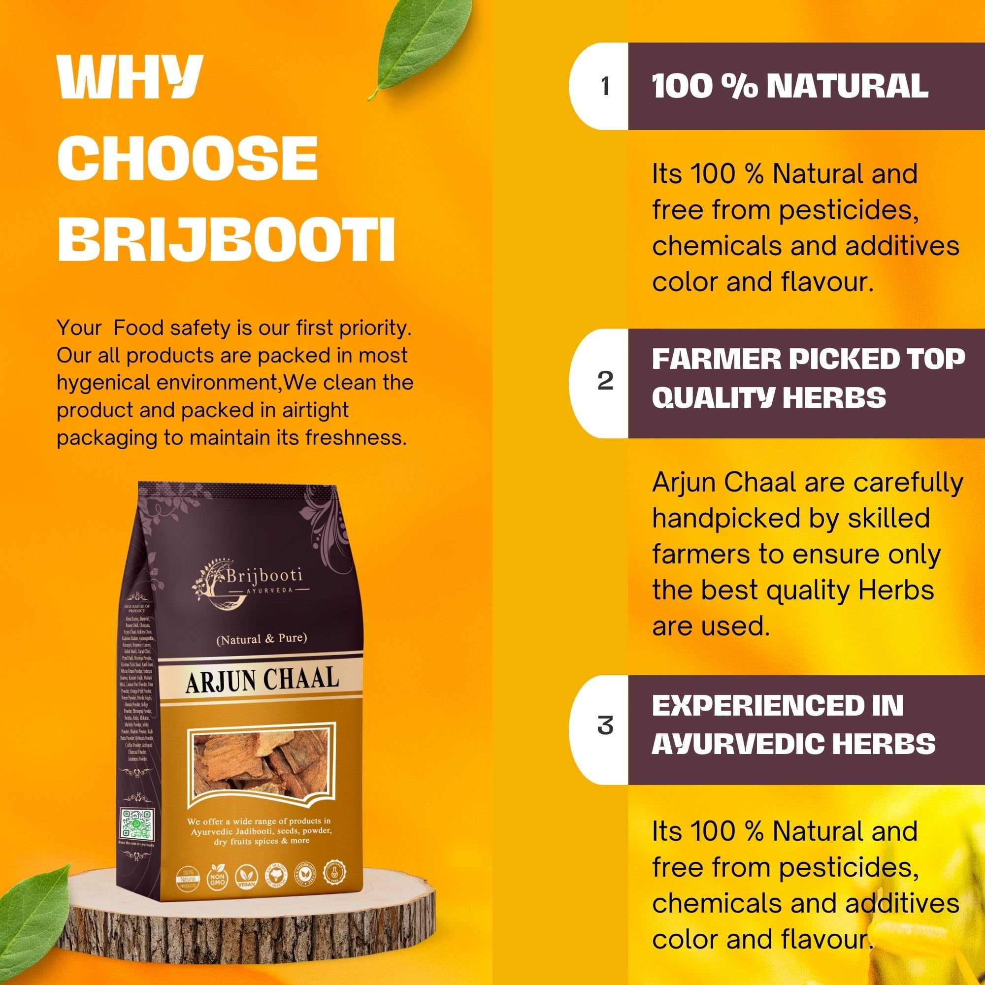 Our Arjun Chaal is sourced from farms directly and it's 100 % Natural and free from pesticides, chemicals, and additives. Its airtight packaging preserves its freshness and flavor.