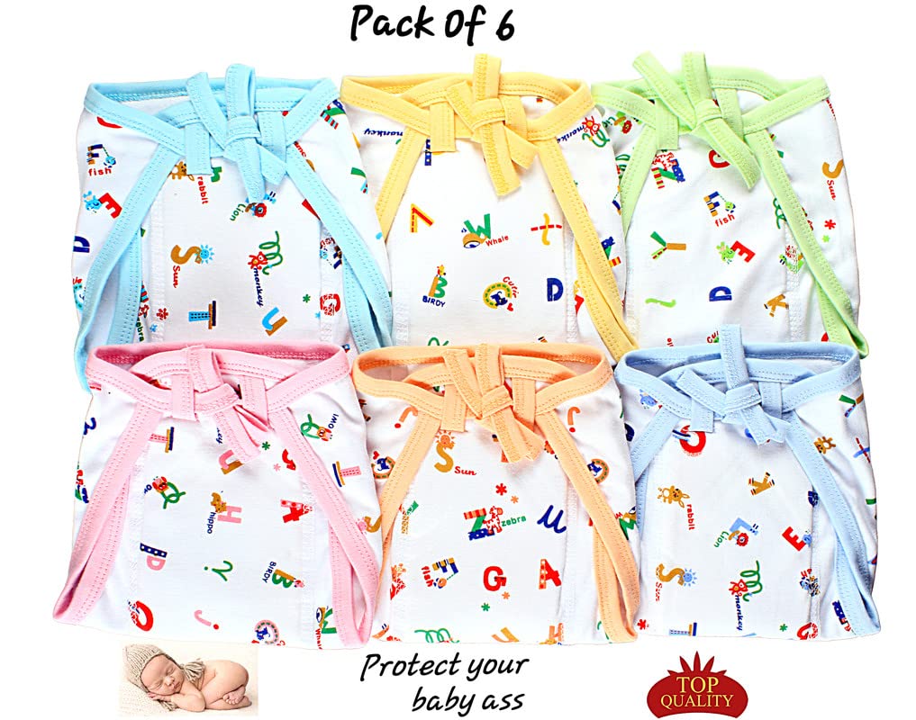 Package includes : 6 pcs Cloth nappies of pure cotton cloth mateial in 6 Different bright and attractive colors prints may vary as per availabilty
