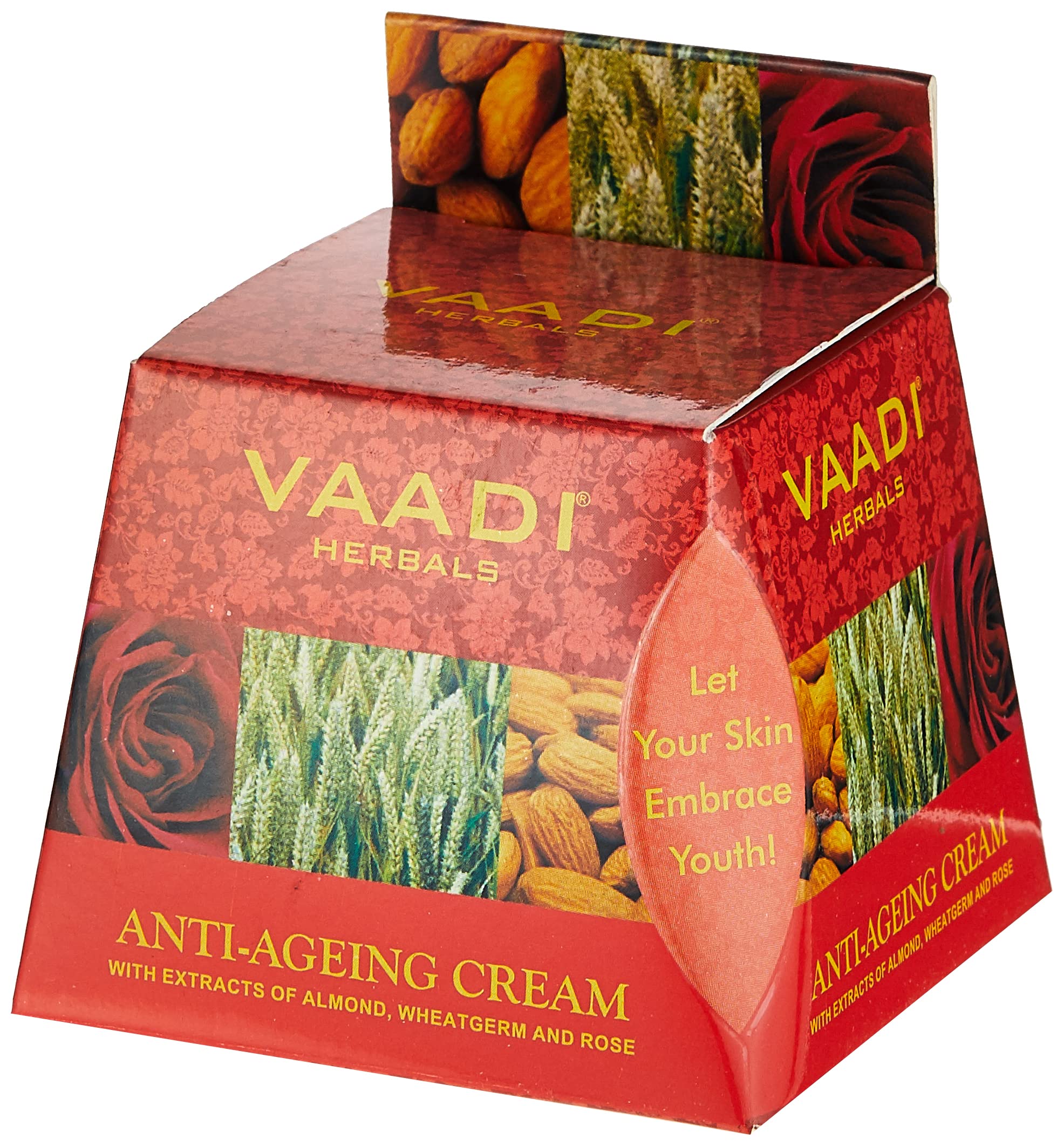 Vaadi Herbals Value Anti Ageing Cream, Almond Wheatgerm Oil and Rose, 30g x 3