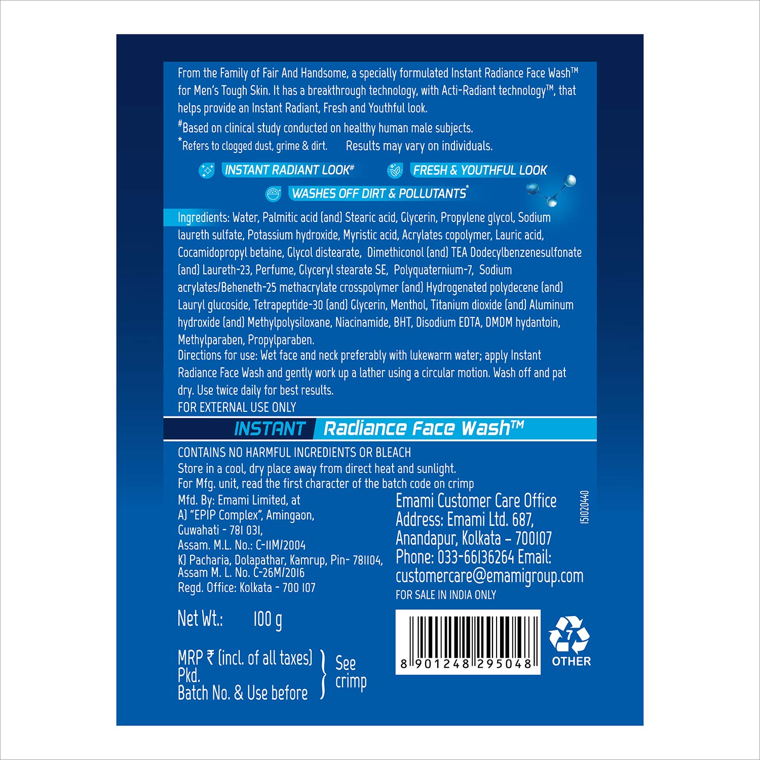 Fair and Handsome Radiance Cream For Men (60 G) and Instant Radiance Face Wash (100 G)