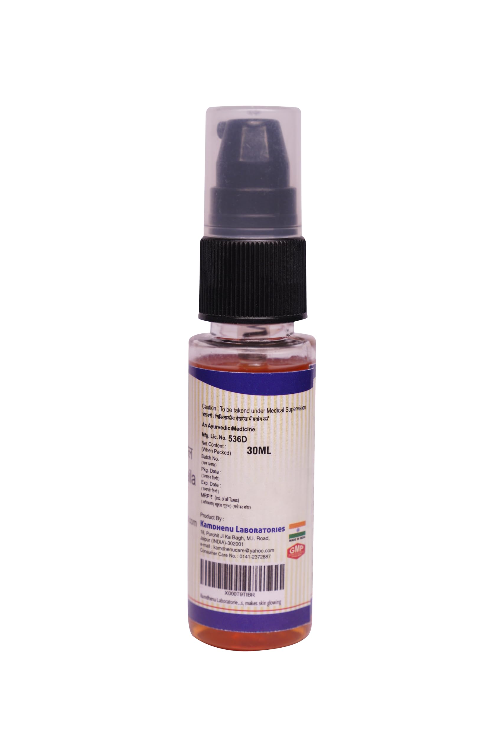 This Beauty Oil For Radiant Skin is pure and natural. This unique formulation of Kamdhenu Laboratories Kumkumadi Taila 30ml makes it a moisturizer for that can be used for various Skin Concerns. This Skin, Body, And Face Oil contains natural Ingredients that work good on the skin, giving you flawless and glowing skin.