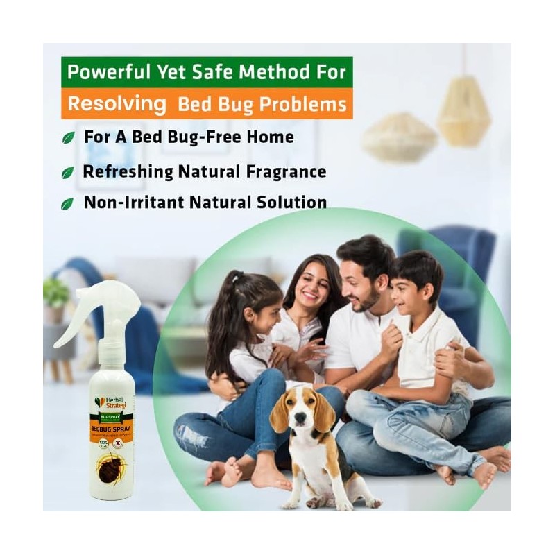 Herbal Strategi Bedbug repellent made completely of herbal plant extracts and oils and Chemical-free, non-toxic, eco-friendly, and biodegradable.