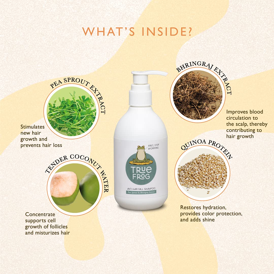Enriched with Pea Sprout to stimulate hair growth, Bhringraj Extract for hair fall control, Tender Coconut Water Concentrate to support cell growth of follicles, Quinoa Protein to restore hydration and protect color.